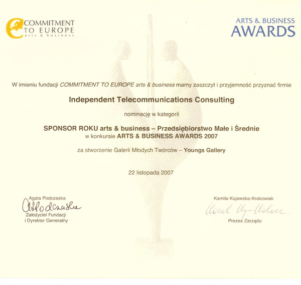 Galeria została nominowana do nagrody Commitment to Europe Art&Business Awards 2007