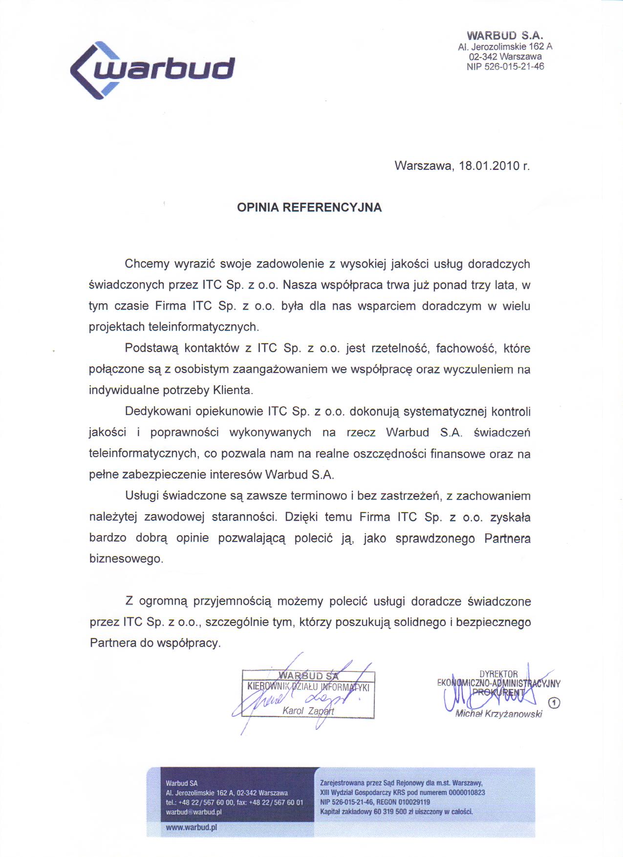 | Warbud | WestLB Bank Polska | Zakład energetyczny Płock | Złomrex |